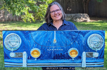 While at Amelia Island Concours, we saw this stunning Azure Blue Porsche 356. It had rained earlier in the morning, and rain drops were still on the car. This piece was quite a challenge as I had never painted a car with raindrops on it before. I learned quite a lot from this piece, and will be painting more challening, rain-kissed vehicles in the near future.