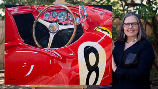 This piece was a challenge for me due to the instrumentation. Dials are a new thing for me to paint. I greatly enjoyed painting this Ferrari and look forward to bringing more race cars to life on canvas.