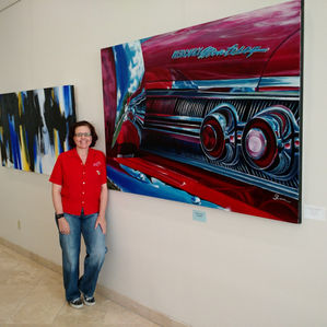 This piece has a different story to tell. I met the owners of this lovely lady at a local car event. When I first saw the front of the vehicle, I commented on the beautiful reflections. The owner said: “If you like that, go look at the back deck.” WOW! Talk about a feast for the eyes. I knew I had to paint her.